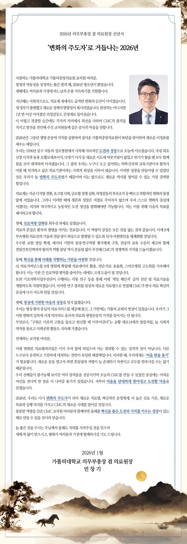 2026년 가톨릭대학교 의무부총장 겸 의료원장 신년사